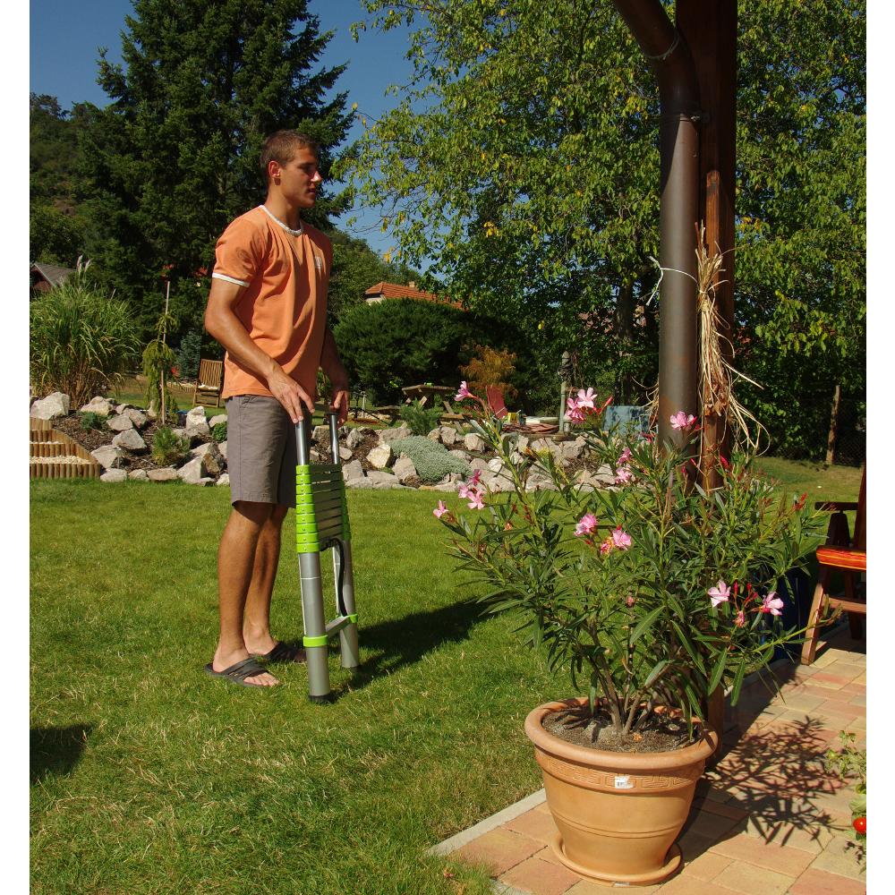 Drabina m minimalne wymagania co do przestrzeni. W stanie złożonym zajmuje miejsce 75 x 47 x 9 cm. Posługiwanie się nią jest łatwe i wygodne. Specjalna konstrukcja i odpowiednio dobrane materiały gwarantują wysoką stabilność również po pełnym rozłożeniu drabiny i pozwalają na maksymalne obciążenie 150 kg i rozłożenie do 2,6 m.