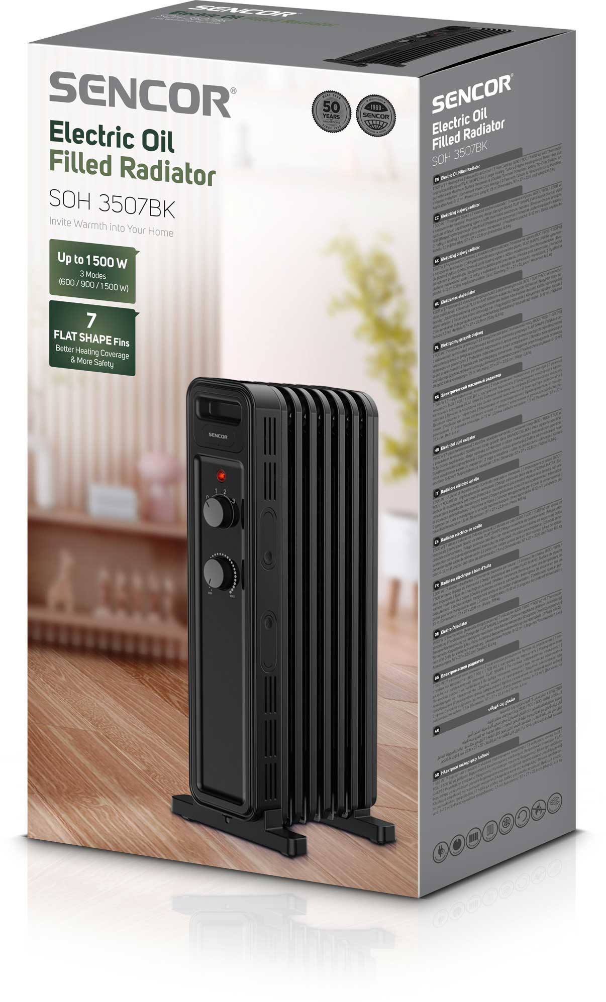 Elektryczny Grzejnik Olejowy Sencor SOH 3507BK 7 Żeber 1500W