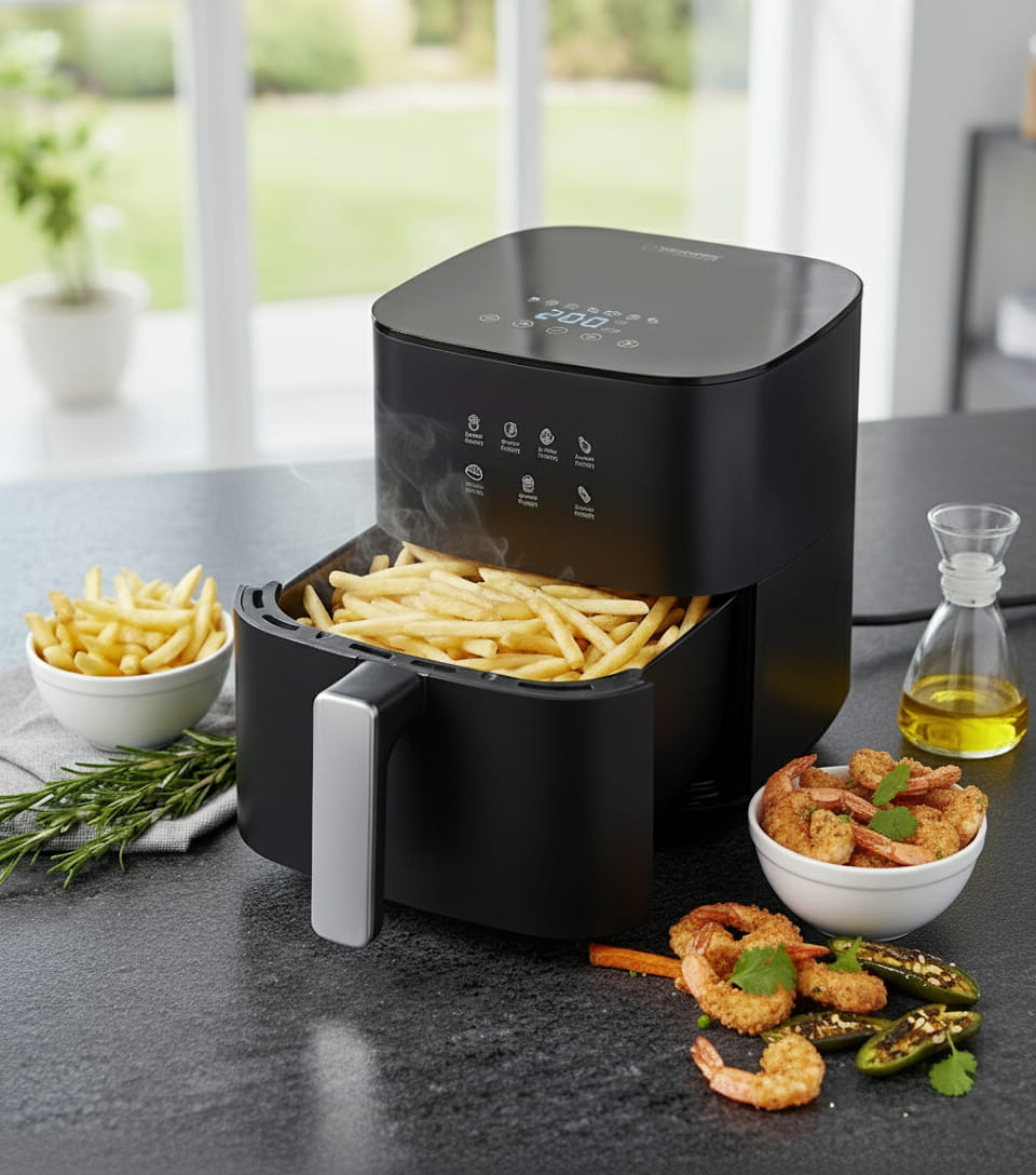 ⭐ Zdrowsze smażenie bez oleju | ⭐ 7 automatycznych programów | ⭐ 1350 W | ⭐ Pojemność 3,5 L | ⭐ Regulacja temperatury 80–200°C | ⭐ Minutnik 60 min | ⭐ Antypoślizgowe nóżki | ⭐ Nowoczesny design