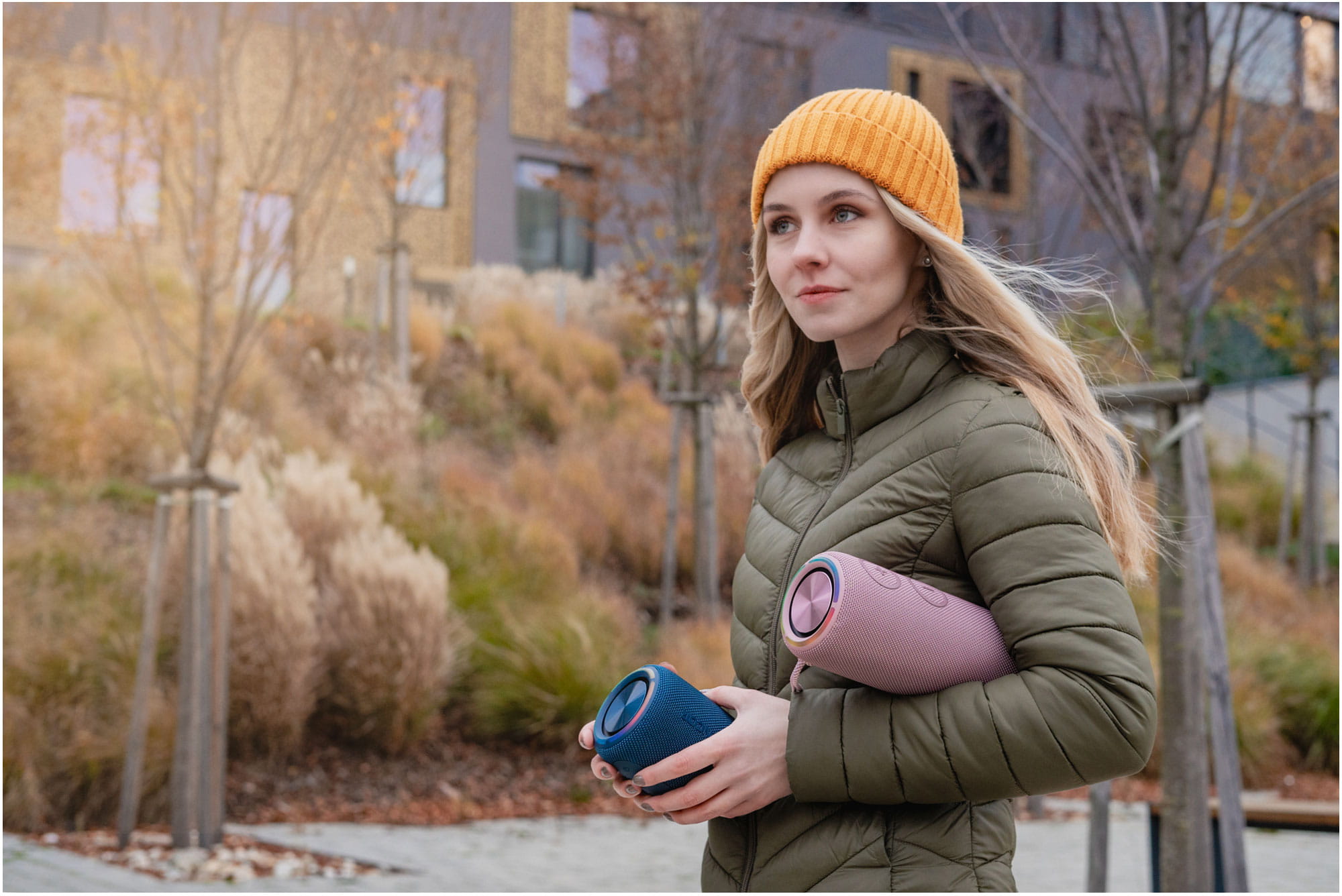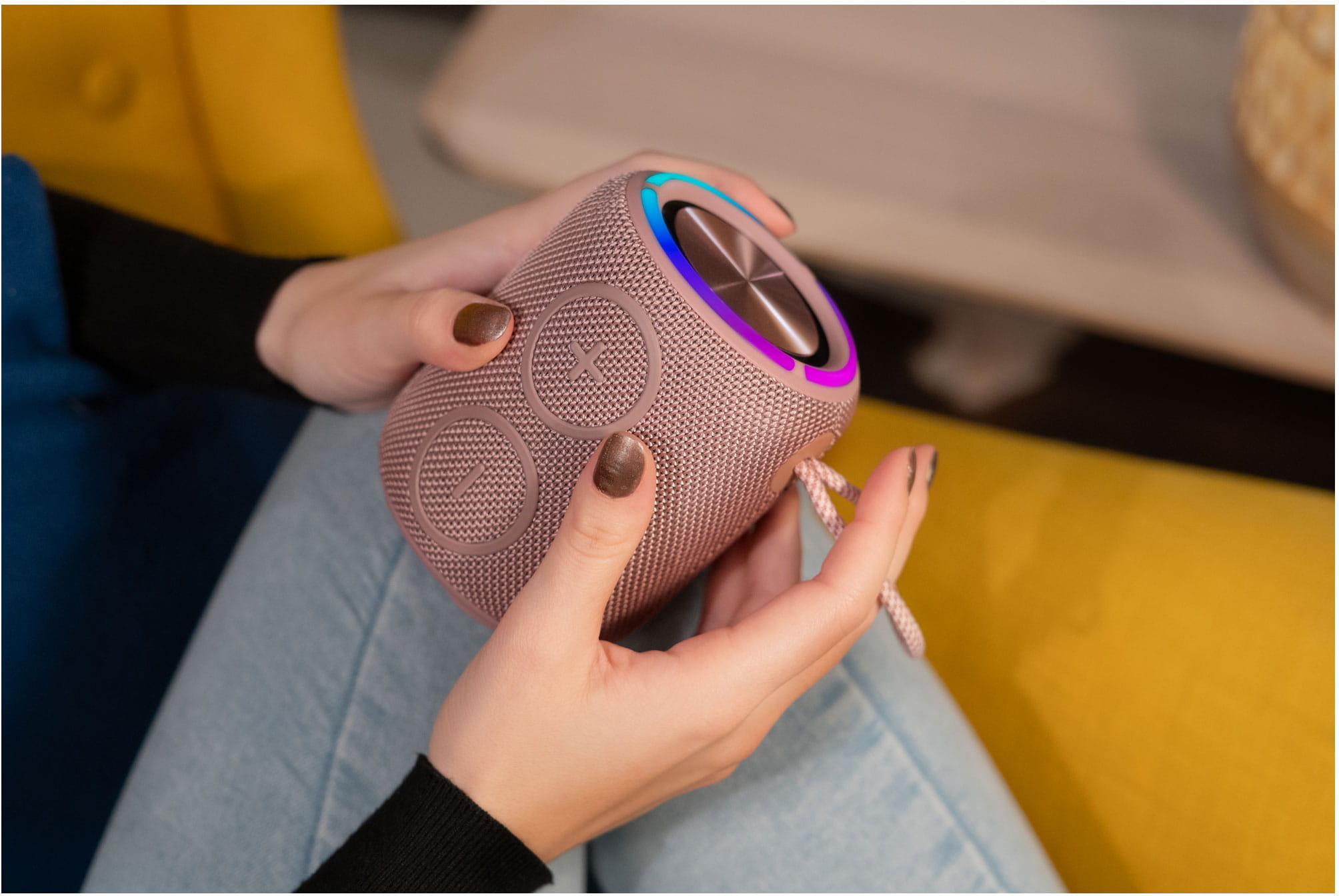 Dzięki zintegrowanemu mikrofonowi głośnik sprawdzi się także jako zestaw głośnomówiący, a wygodne ładowanie przez USB-C i kompaktowe rozmiary sprawiają, że to świetny wybór na każdą okazję – od relaksu w domu po aktywność na świeżym powietrzu.