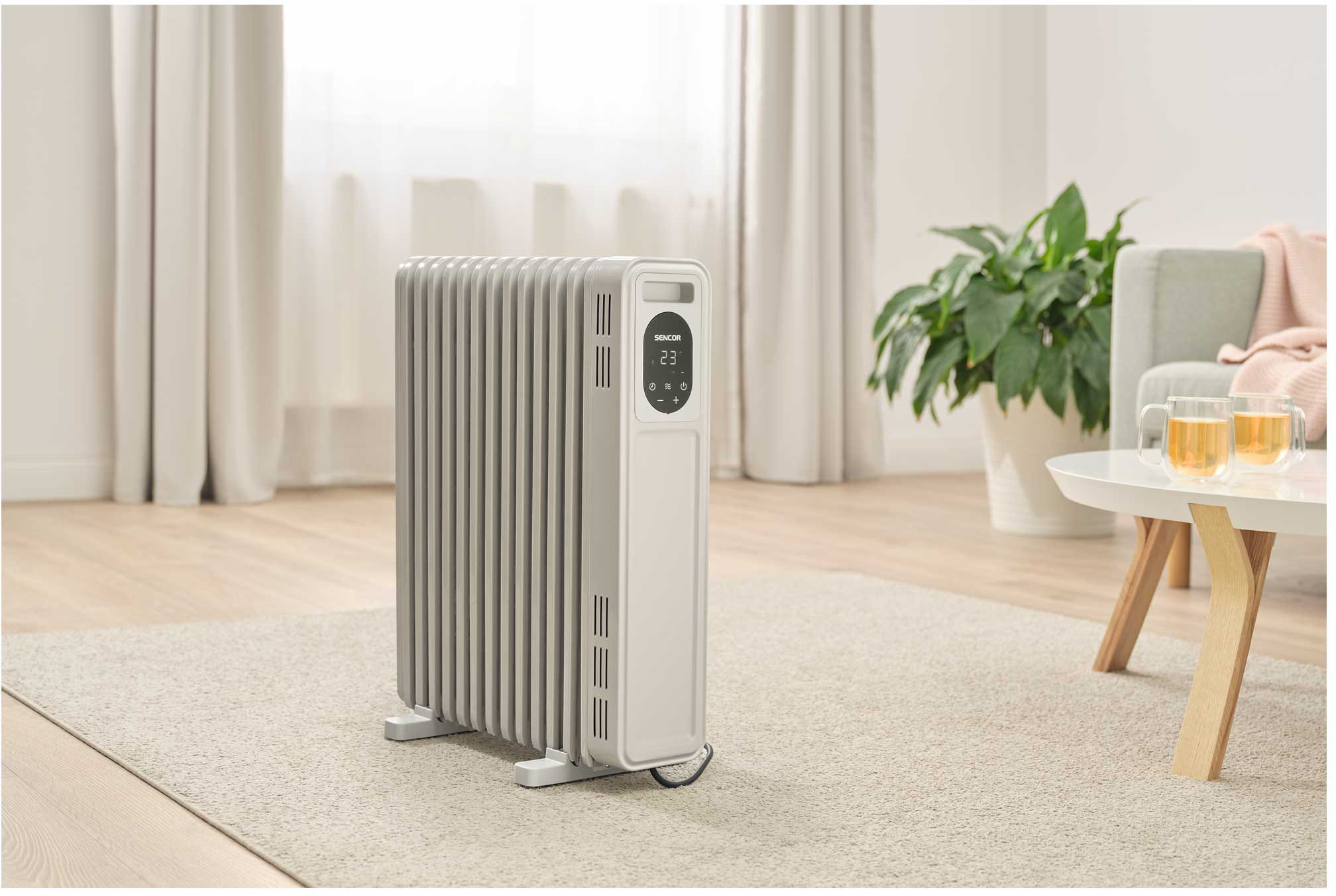 Nowoczesny, wydajny i elegancki – cyfrowy grzejnik olejowy Sencor SOH 6213WH to idealne rozwiązanie do dogrzewania domu, biura, warsztatu lub domku letniskowego.