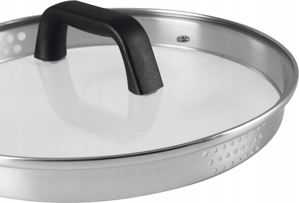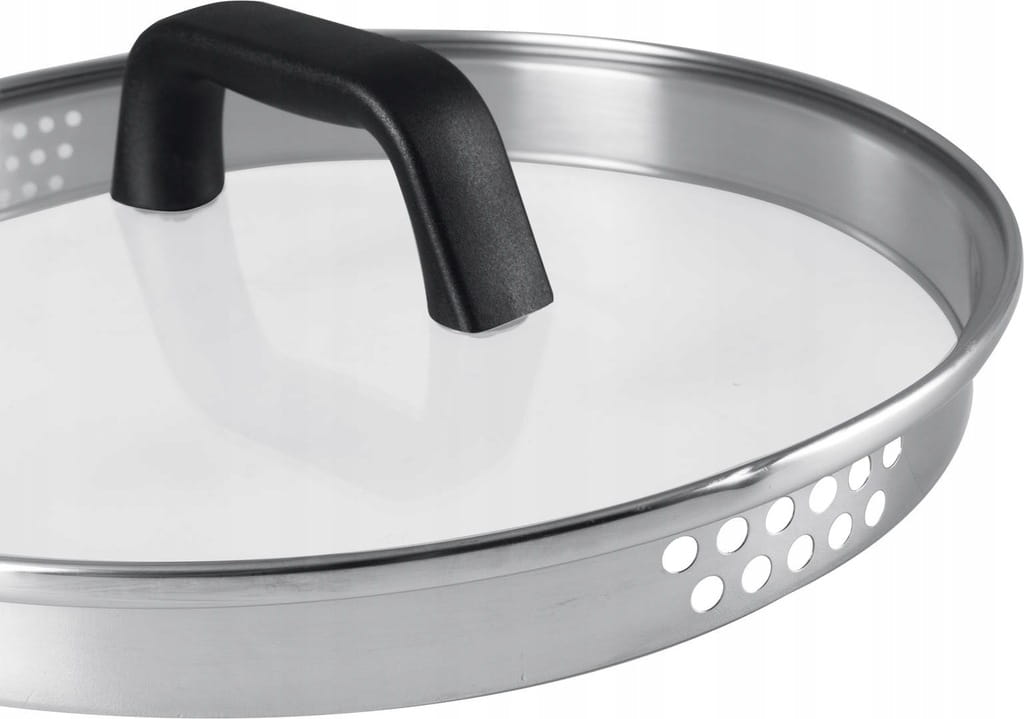 Pokrywki z odpornego szkła i otworem na parę, zapewniające dokładną kontrolę gotowania.