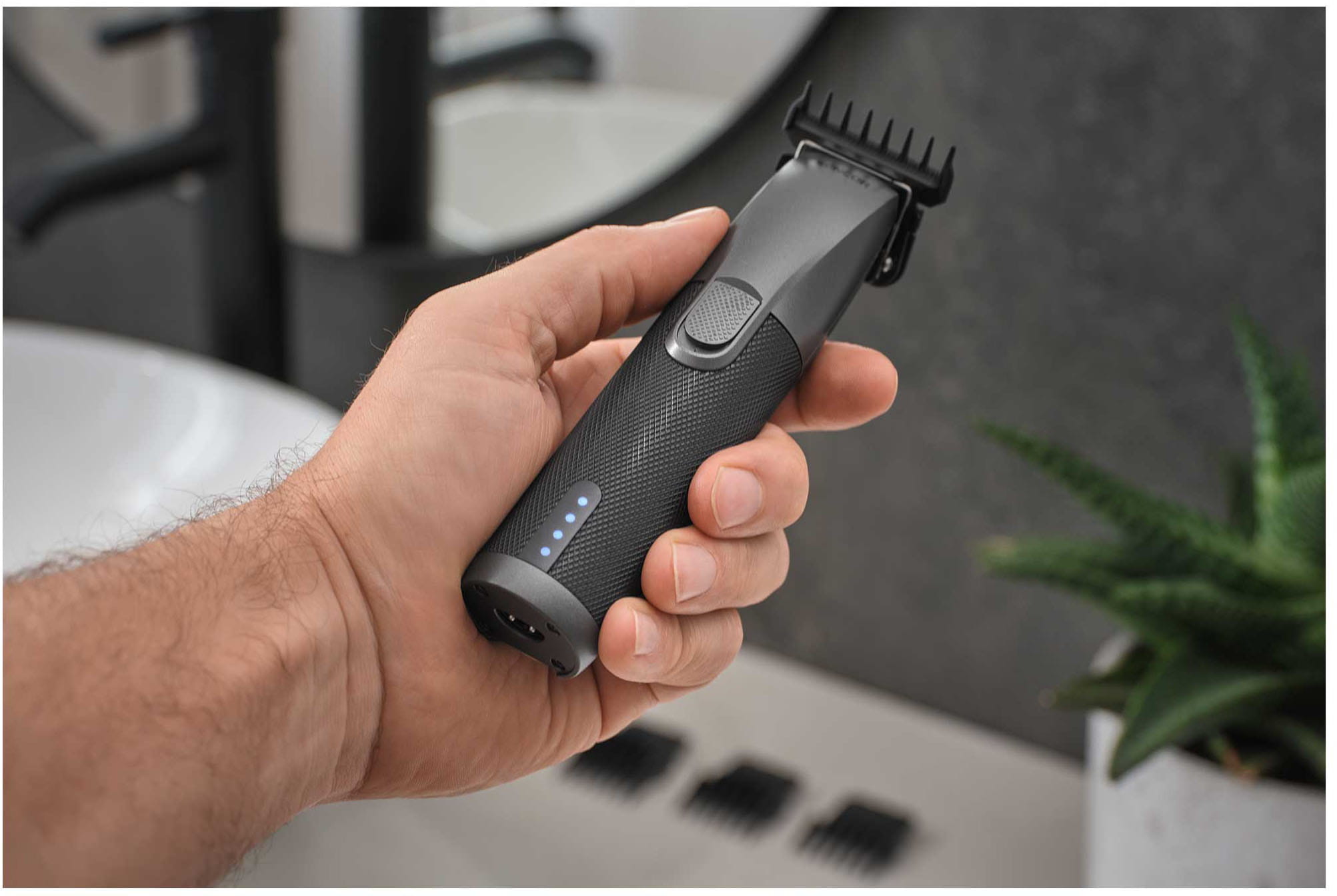 Ergonomiczny uchwyt – zapobiega wyślizgiwaniu się z dłoni nawet podczas dłuższego strzyżenia