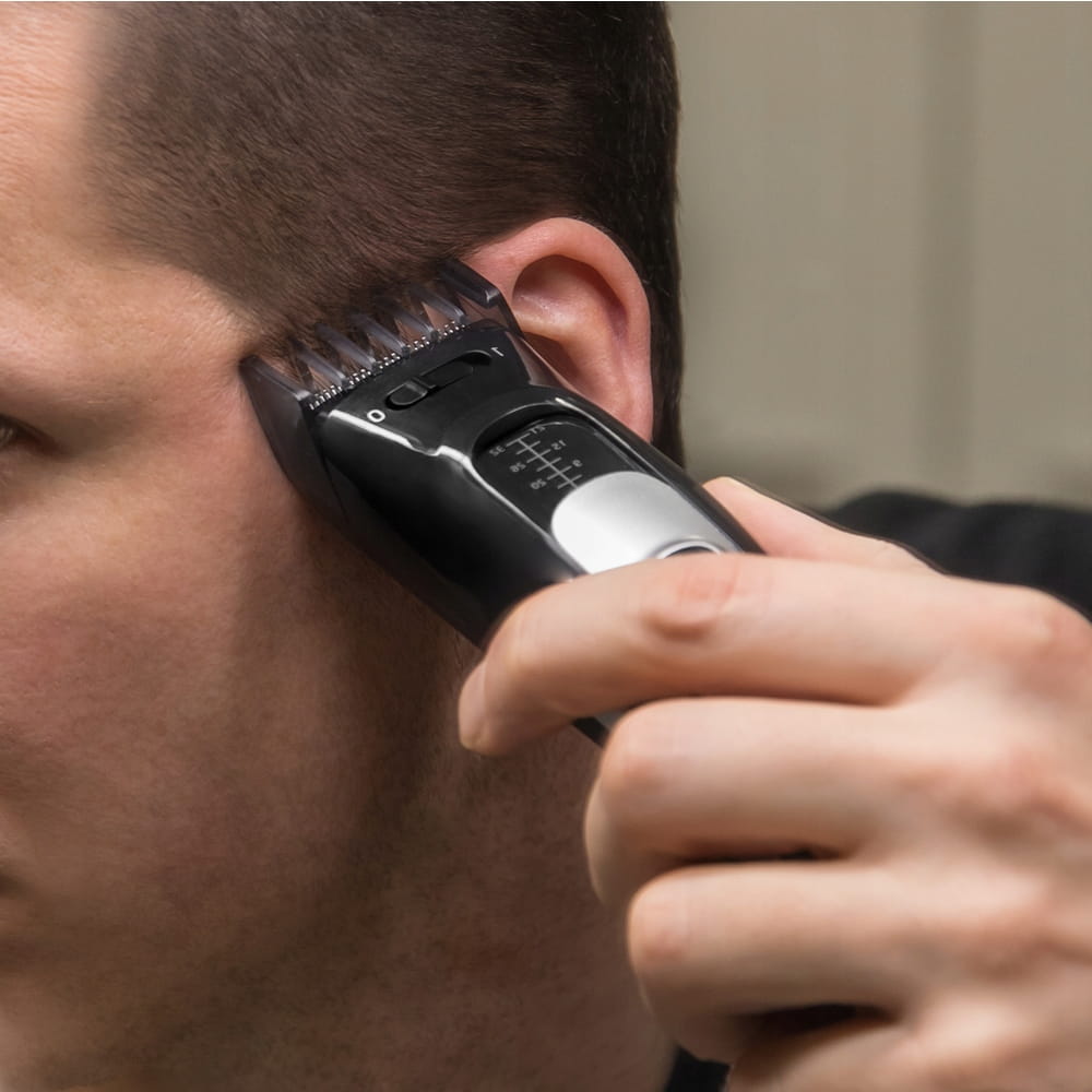 Dodatkowe akcesoria: praktyczny stojak, ładowarka/zasilacz, 2 nasadki grzebieniowe, szczoteczka do czyszczenia, olej do jednostki tnącej