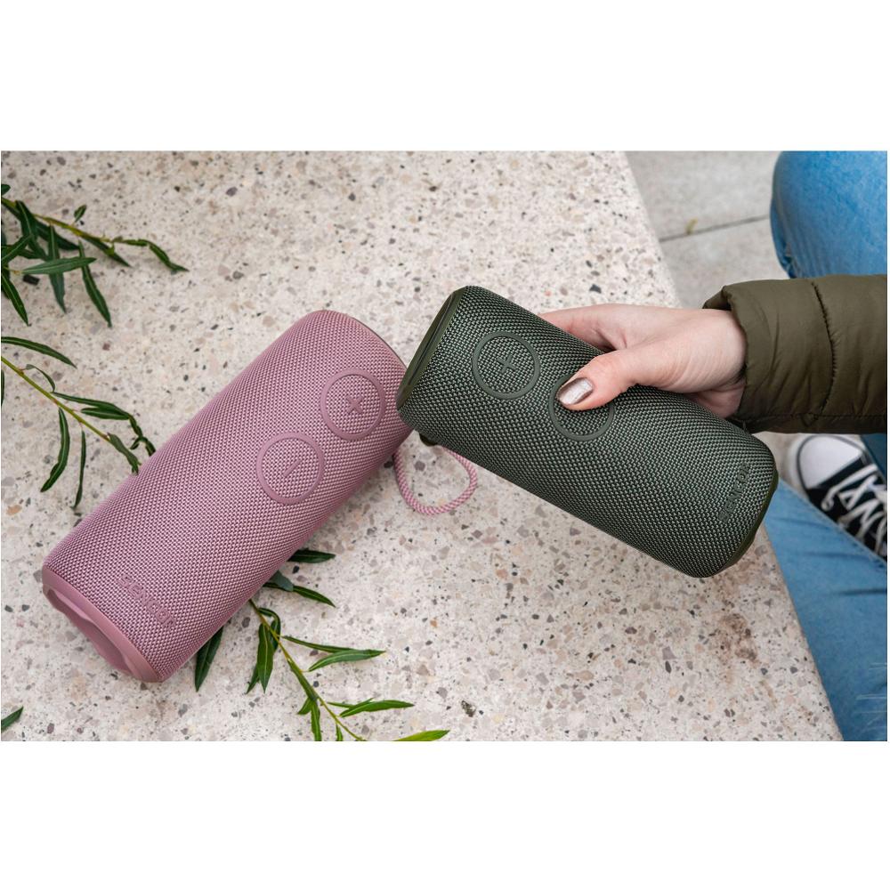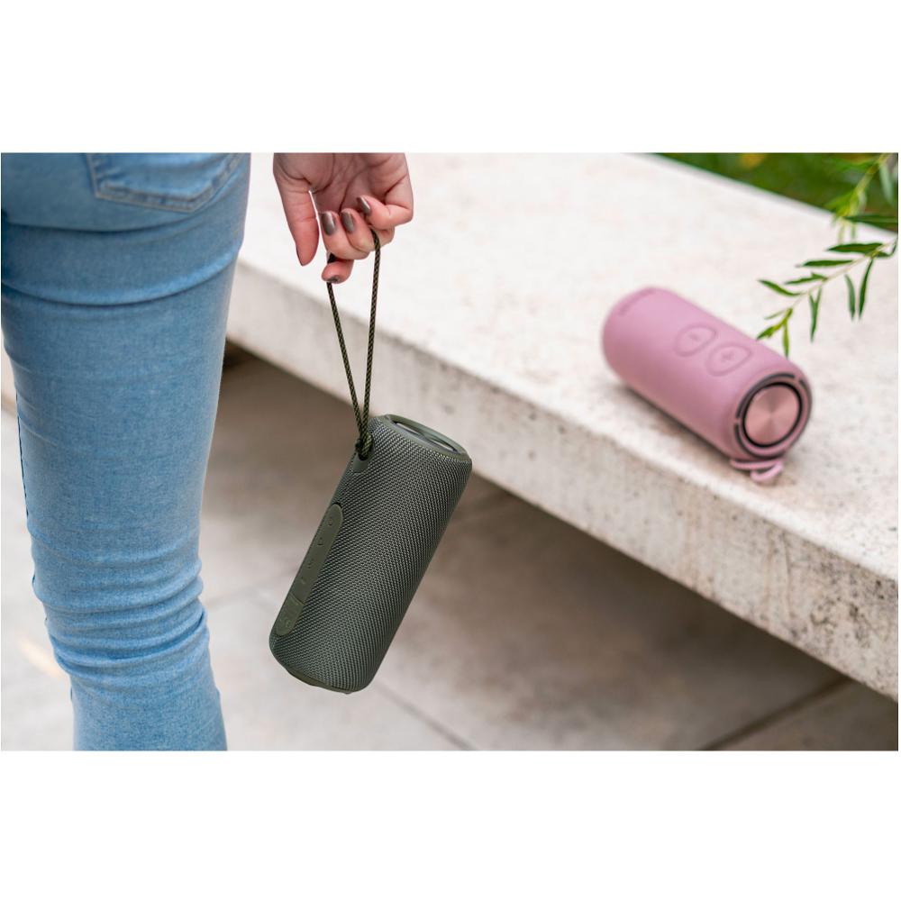 Głośnik posiada stopień ochrony IPX7, co oznacza, że jest chroniony przed wodą i wilgocią. Można go zabrać na plażę, na basen czy na wycieczkę w deszczową pogodę, a muzyka nadal będzie grać bez problemu. Wysokiej jakości osłona głośnika z tkaniny dodatkowo chroni przed zadrapaniami i dodaje eleganckiego wyglądu spójrz.