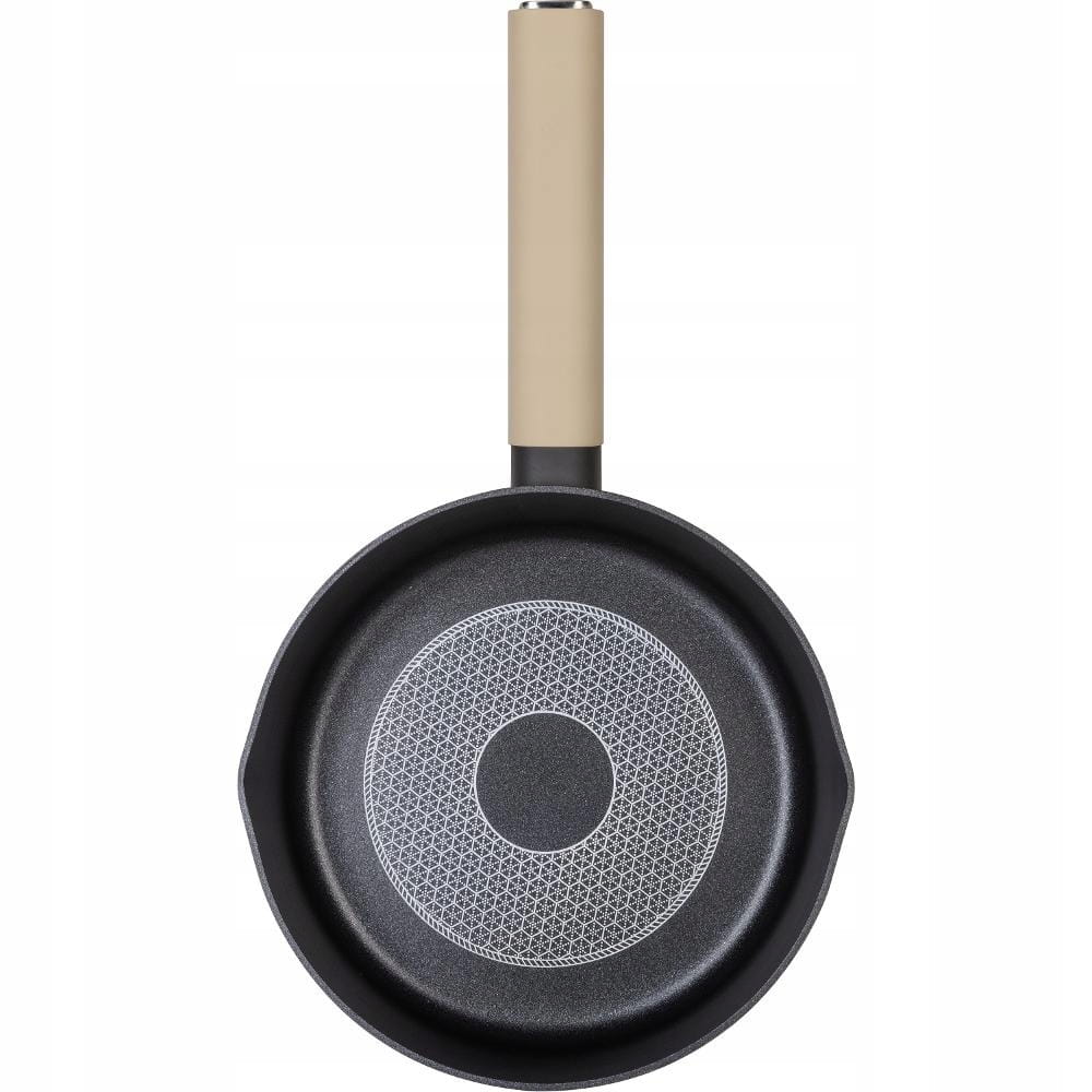 Wyprodukowano z wysoce wytrzymałego aluminium. Patelnia posiada wewnętrzną powierzchnię odporną na zadrapania i przypalanie, grube dno i bardzo elegancki uchwyt soft. Nieprzywierający materiał bez wykorzystania PFOA (nie wydziela żadnych substancji toksycznych w przypadku przegrzania) jest wysoce odporny na temperatury i zapobiega przypalaniu. Zdrowe gotowanie oraz łatwa konserwacja i czyszczenie.