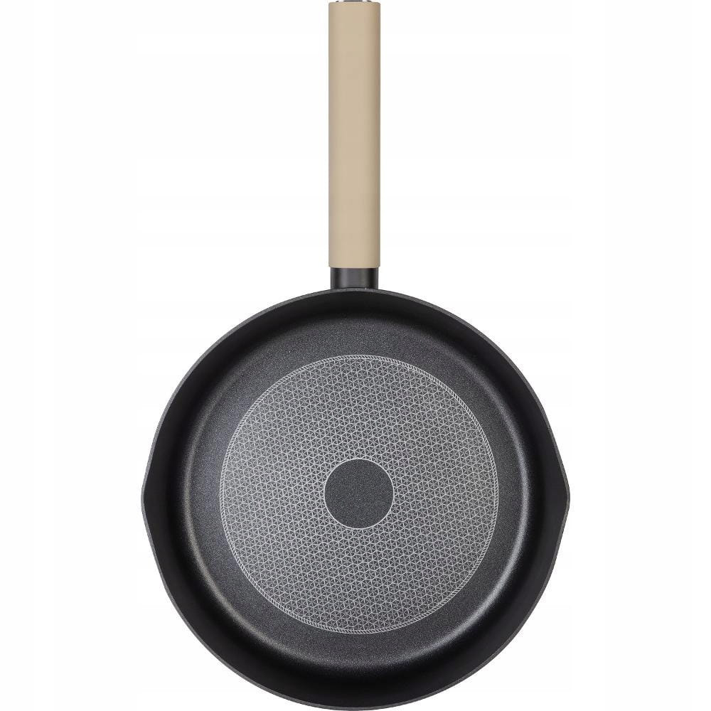 Wyprodukowano z wysoce wytrzymałego aluminium. Patelnia posiada wewnętrzną powierzchnię odporną na zadrapania i przypalanie, grube dno i bardzo elegancki uchwyt soft. Nieprzywierający materiał bez wykorzystania PFOA (nie wydziela żadnych substancji toksycznych w przypadku przegrzania) jest wysoce odporny na temperatury i zapobiega przypalaniu. Zdrowe gotowanie oraz łatwa konserwacja i czyszczenie.