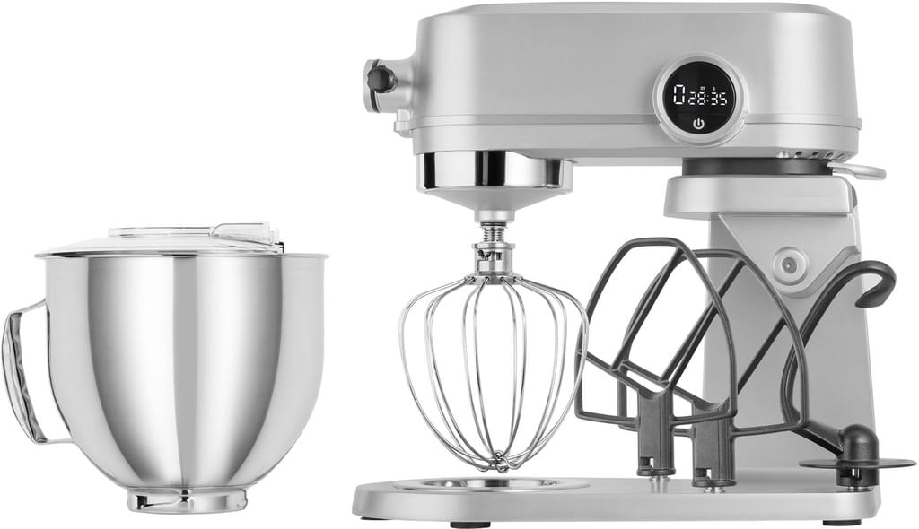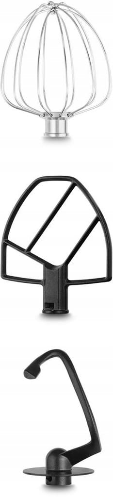 o pojemności 5 litrów z praktycznym dużym uchem. Wszystkie miotełki zostały wykonane w całości z metalu, łatwo wymienialne w korpusie robota, mocno przymocowane, dlatego porządnie ubiją, wymieszają i ugniotą każdy krem i ciasto. Surowce nie przylegają do miotełek, dlatego łatwo można je wyczyścić. Rękojeść umożliwiająca łatwe trzymanie miski, ułatwi pracę podczas przelewania większej objętości ciasta lub kremu.