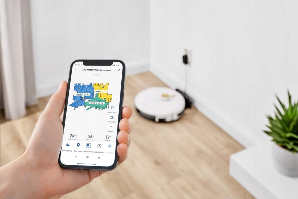 - Możliwość ustawienia optymalnego czyszczenia dla każdego pomieszczenia osobno dzięki funkcji multi-room