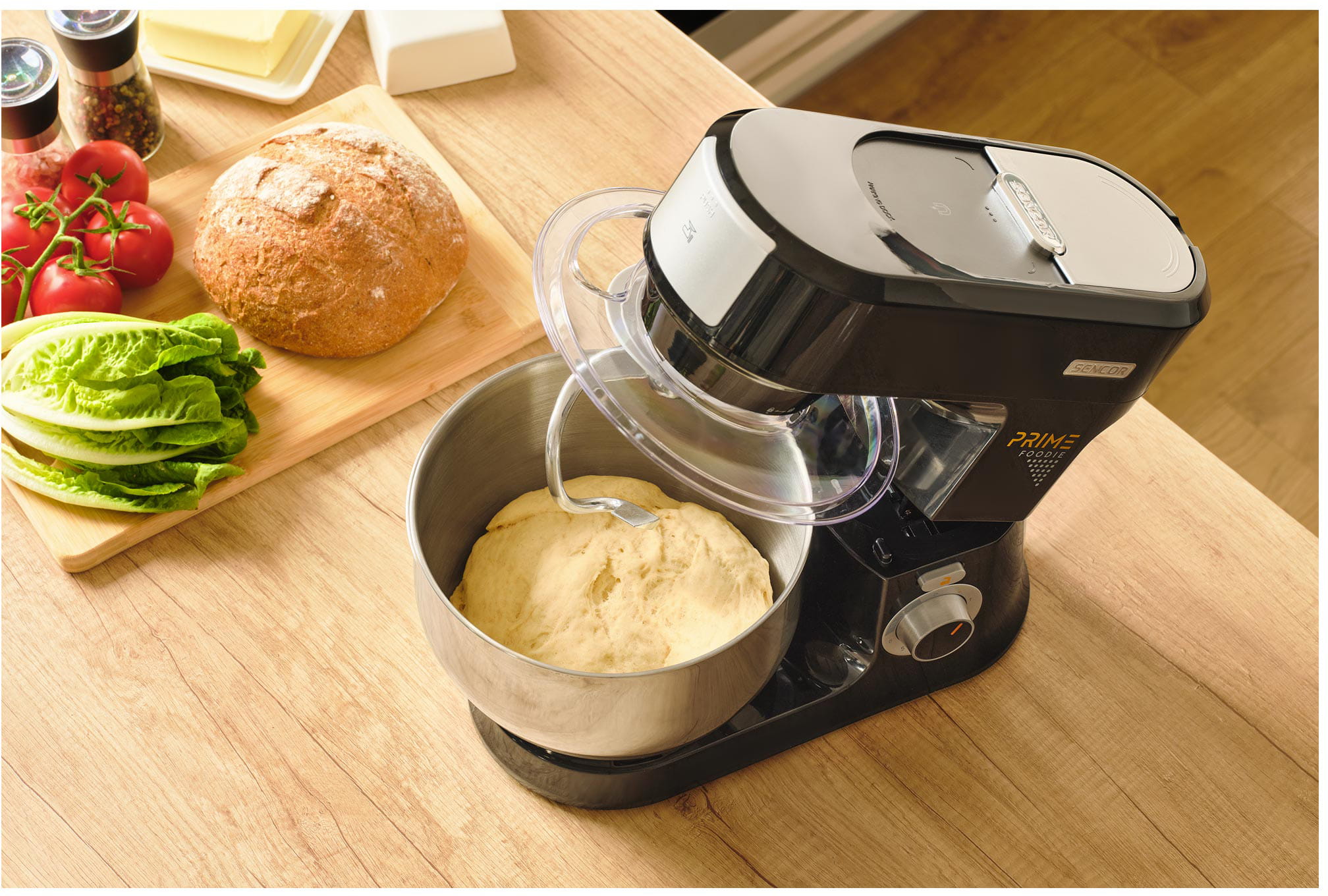 - pojemnik ze stali nierdzewnej o pojemności 4,5 l do wszystkich rodzajów ciasta (0,8 kg do ciast sztywnych, 2,2 l do ciast miękkich)