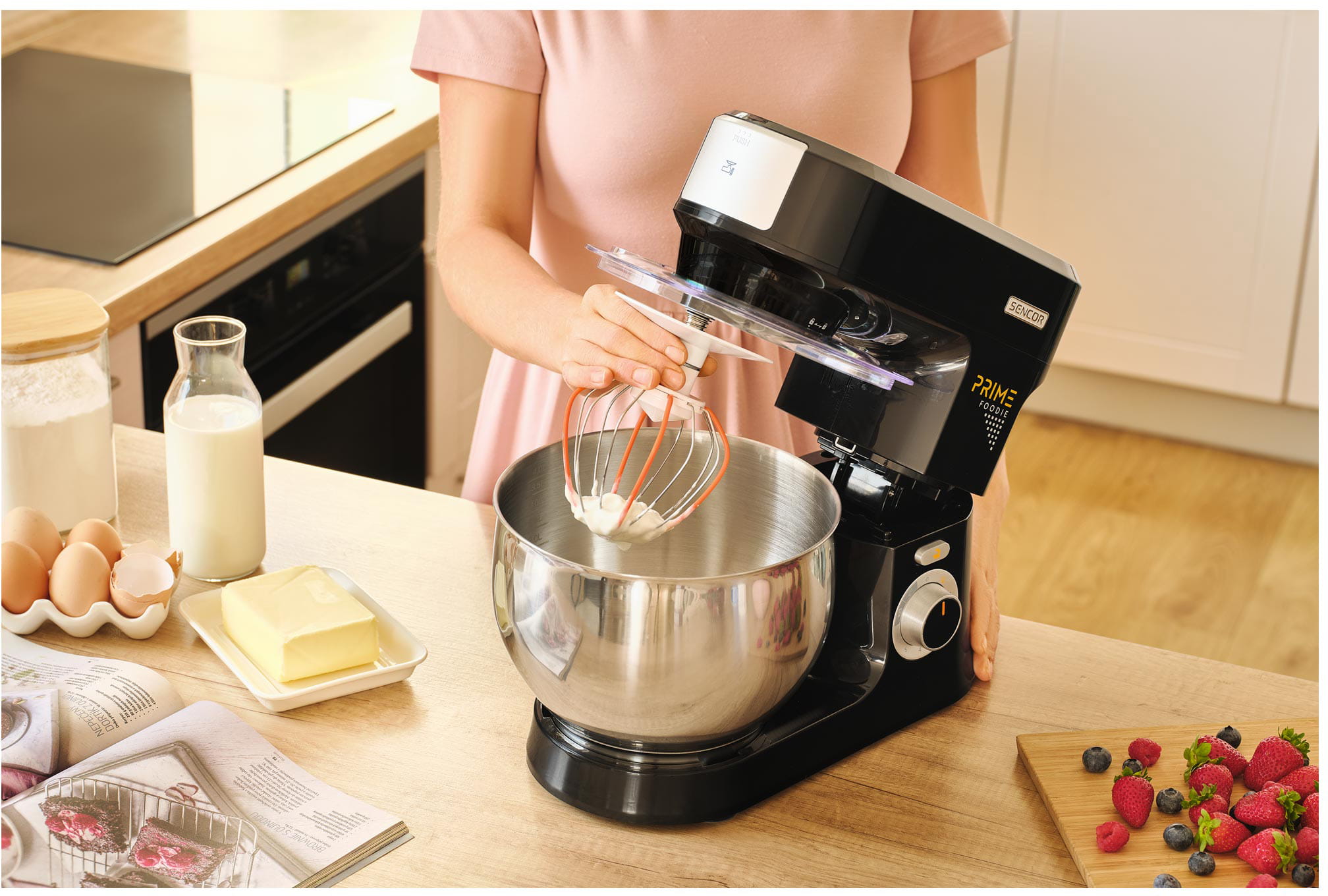 Robot kuchenny planetarny marki SENCOR o mocy 1000 W umożliwia przygotowanie rozmaitych potraw, w tym różnego rodzaju ciast, dzięki zestawowi 4 różnych końcówek mieszających. Urządzenie dysponuje 6 stopni ustawienia prędkości, funkcję PULSE oraz 2 programy NutriSmart. Obsługa urządzenia jest intuicyjna dzięki unikalnym rozwiązaniom, takim jak oświetlenie LED wnętrza naczynia.