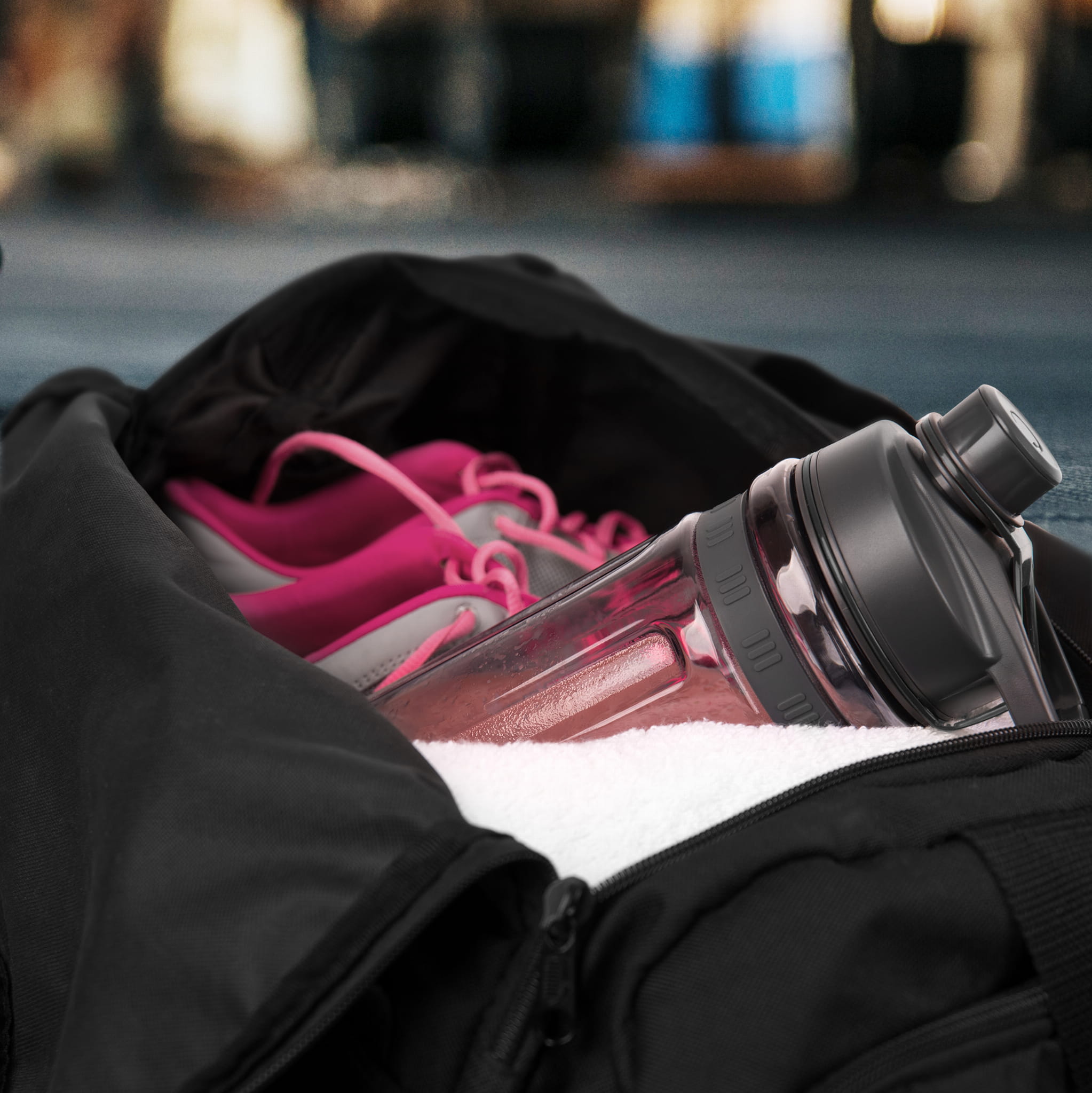 Trwałe, mocne butelki nadają się do każdej aktywności. Możesz go zabrać ze sobą na bagażnik rowerowy lub w samochodzie. Butelki są łatwe do zamknięcia dzięki otworowi do picia w pokrywie. Dzięki niezawodnemu systemowi zamykania nie musisz martwić się o wylanie się zawartości ze szklanki.
