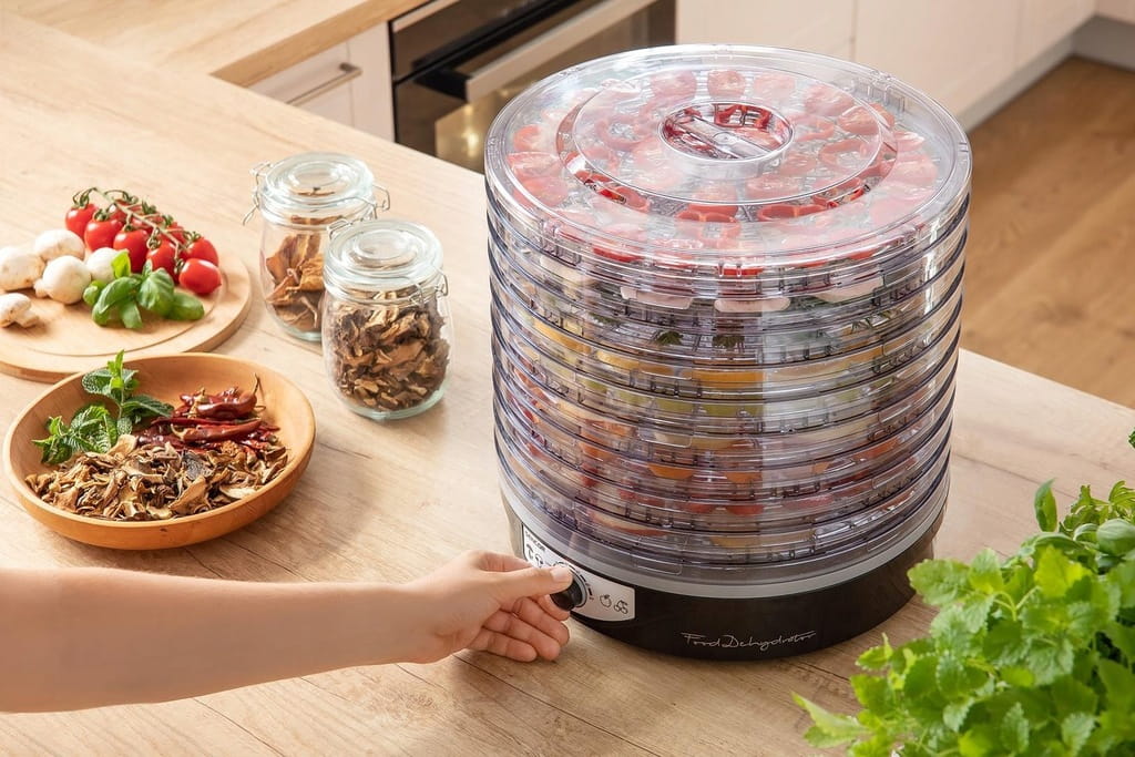 - Przezroczyste wieko i tace pozwalają na natychmiastową kontrolę wzrokową stanu suszenia