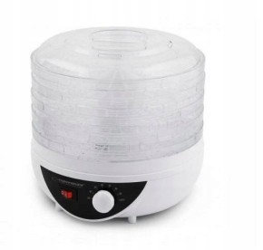 - posiada dużą moc 250W i wbudowany wentylatordzięki czemu produkty zostaną szybko, dokładnie i równomiernie wysuszone zachowując wszystkie walory zapachowe i smakowe.