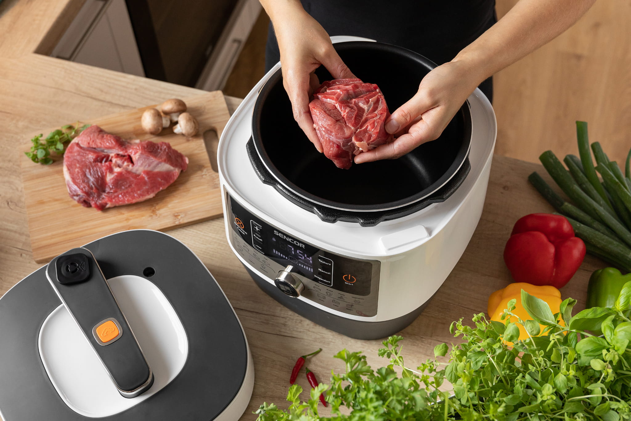 Szybkowar Sencor SPR SPR 3600WH o mocy 1000 sprawi, że proces gotowania potraw skróci się nawet o połowę, dotyczy to praktycznie wszystkich dań. Gotując rośliny strączkowe, jak np. fasola, nie trzeba ich wcześniej namaczać, gdyż szybkowar ugotuje je na miękko bez tego. Odpowiednie ciśnienie umożliwia ugotowanie nawet najbardziej twardych gatunków mięsa tak, by stworzyć z nich łagodne i miękkie gulasze. Gotowanie w szybkowarze Sencor to zachowanie w 100% smaku i aromatu potraw.