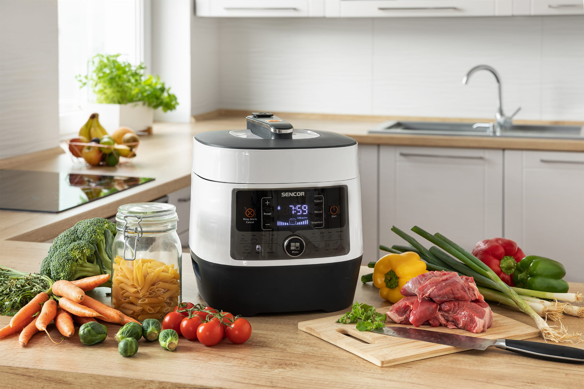 Szybkowar elektryczny marki Sencor SPR 3600WH o mocy 1000W, sprawia, że gotowanie, pieczenie czy smażenie wcale nie musi być czynnością mozolną, zajmującą dużo czasu. Jest to urządzenie, które skraca czas gotowania jest nawet o połowę, w porównaniu do klasycznych garnków.