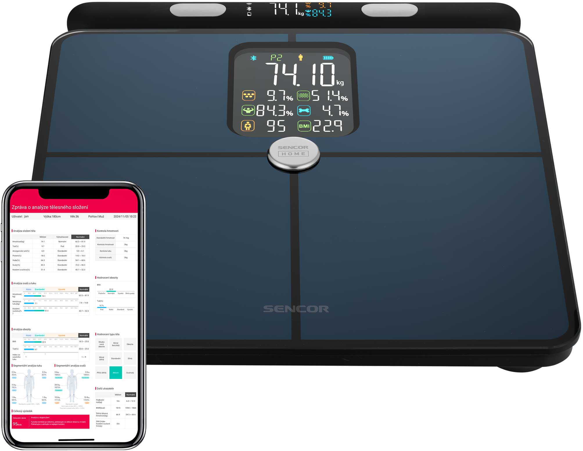 Waga Łazienkowa Analityczna BMI Sencor 9102 aplikacja 5 segmentów pomiaru