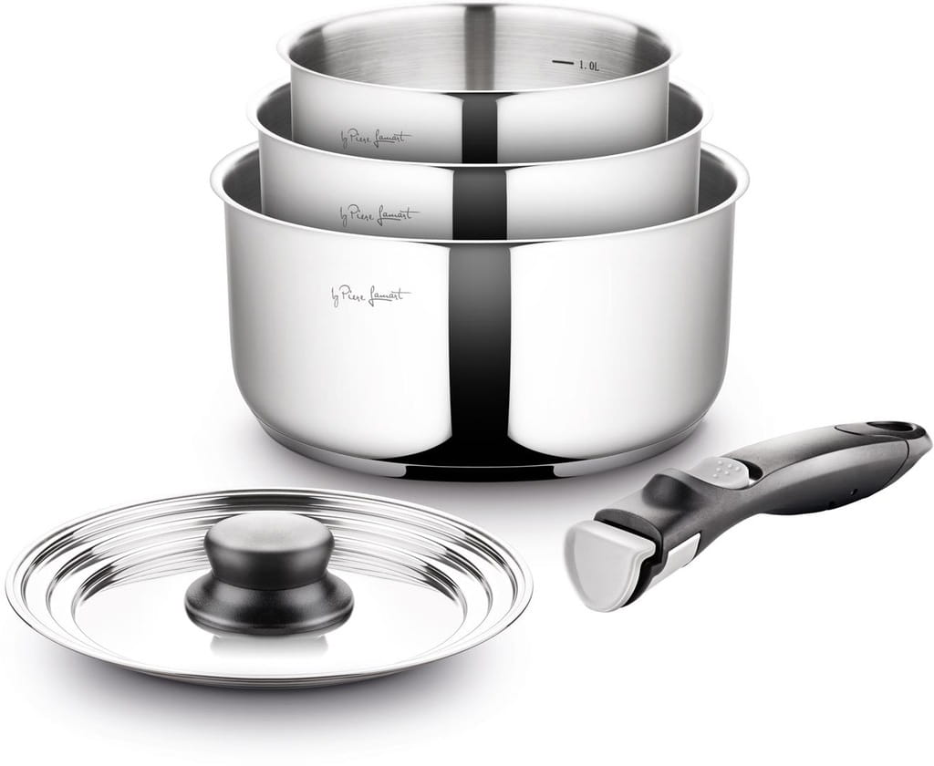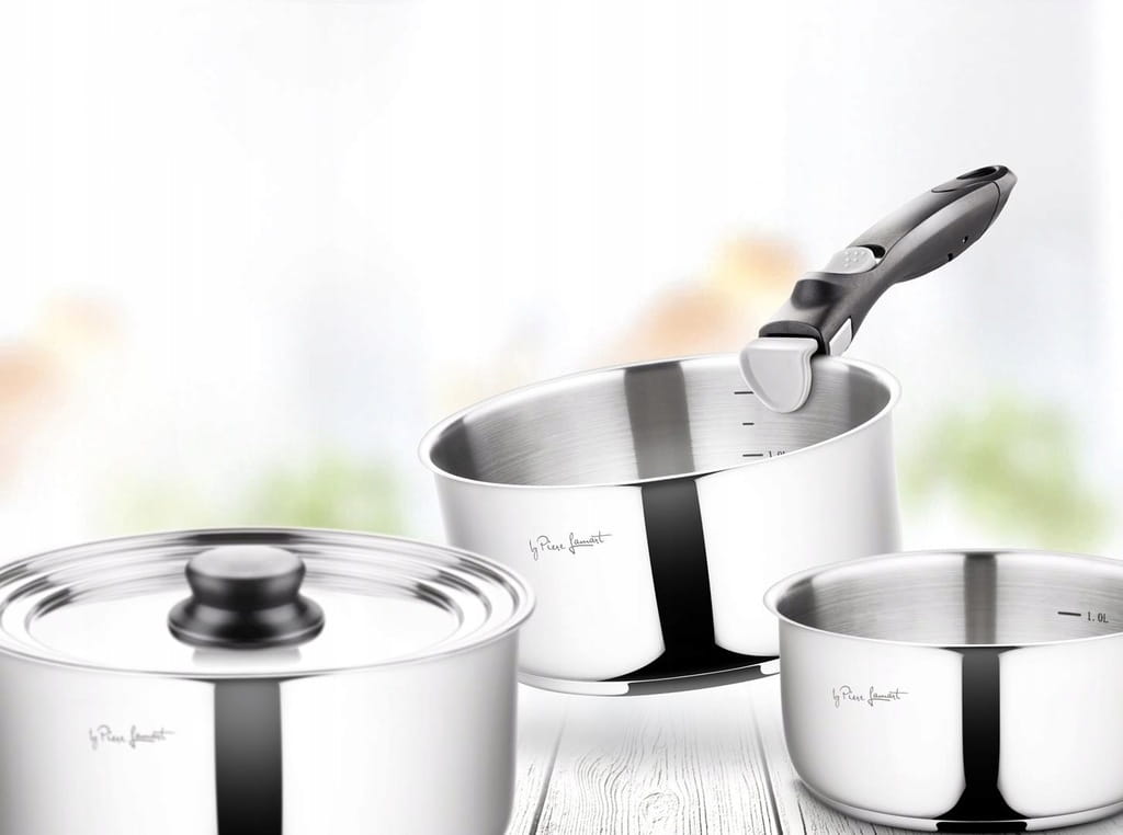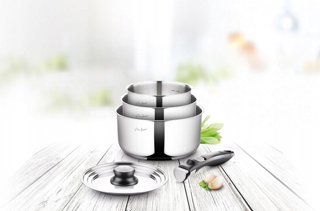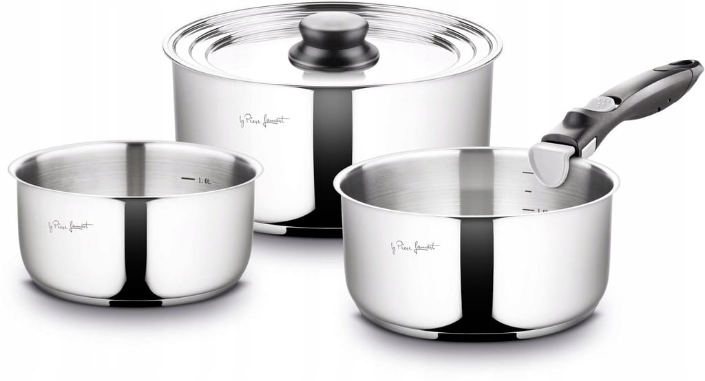 Zestaw 3 Garnków Z Odpinaną Rączką Stal Nierdzewna LT1009 5 Części