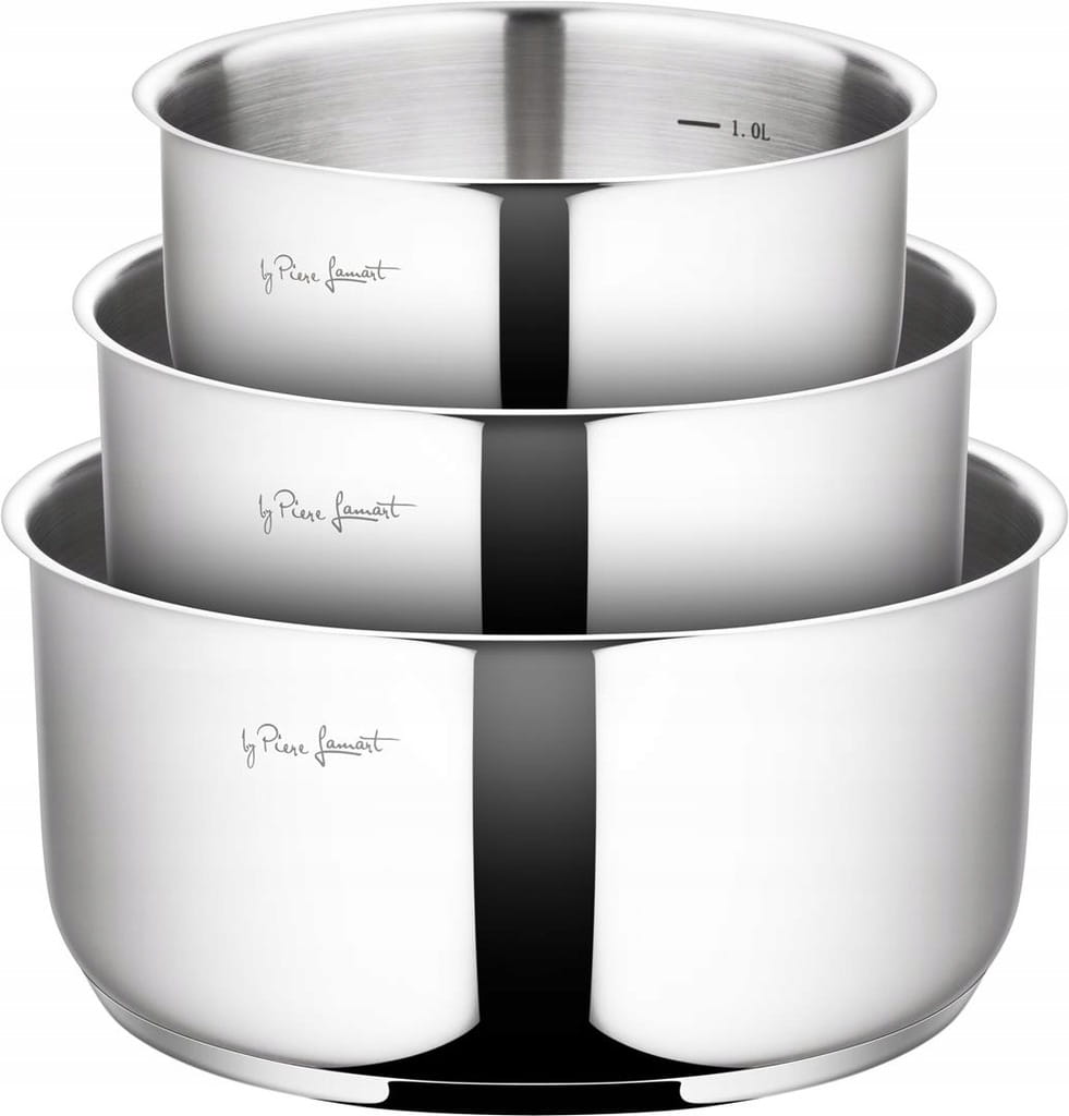 W skład zestawu wchodzi uniwersalna pokrywa o rozmiarach odpowiadających garnkom wyprodukowana ze stali nierdzewnej